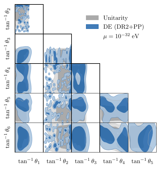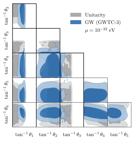 Unitarity, computed in this way, is exceptionally lean; the compiled evaluator has a millisecond runtime, three orders of magnitude faster than modern Boltzmann solvers. This is to be compared to symbolic computation, which can take many hours when parallelised on a cluster. In turn, this economy facilitates the large \(n_{\text{live}}{}\sim 10^4\) used in Figure 1, Figure 2, Figure 3, Figure 4, which is necessary in practice to resolve the fine structures associated with particle physics requirements â by contrast, phenomenological constraints on cosmological parameters are often smoother, and more amenable to kernel density estimation.